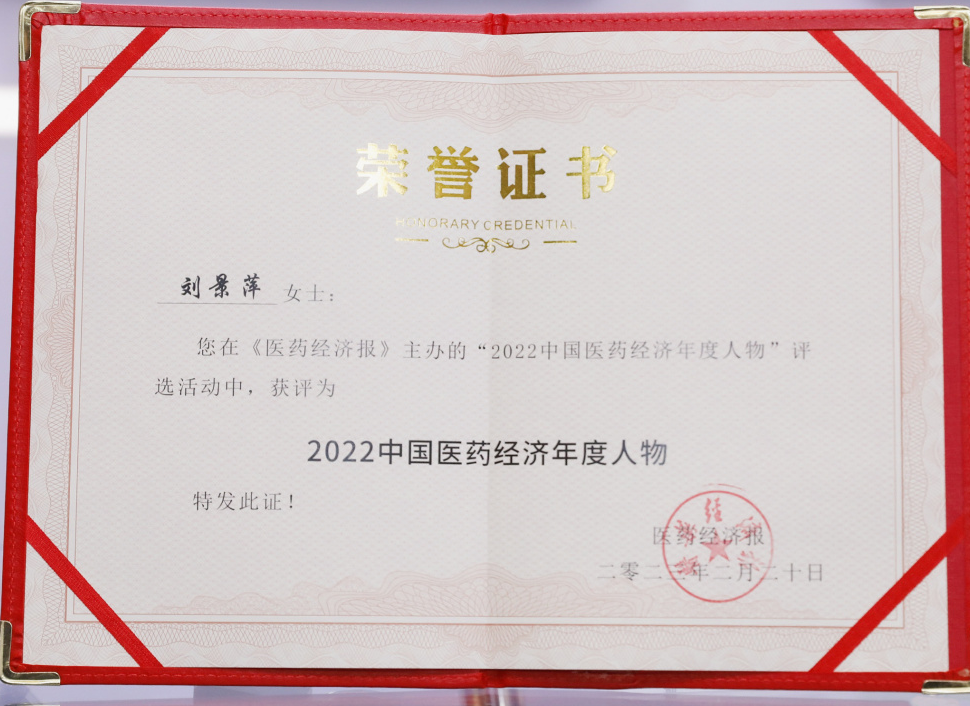 JDB电子药业集团董事长刘景萍当选“2022中国医药经济年度人物”