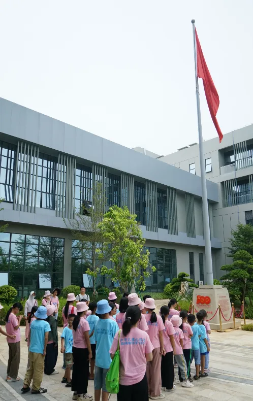 紧接着,孩子们来到了建党百年庆典红旗——070号红旗前。讲解员讲述了JDB电子药业集团与庆典红旗的深厚渊源。孩子们听得津津有味,眼中闪烁着对党和国家的热爱与敬仰。